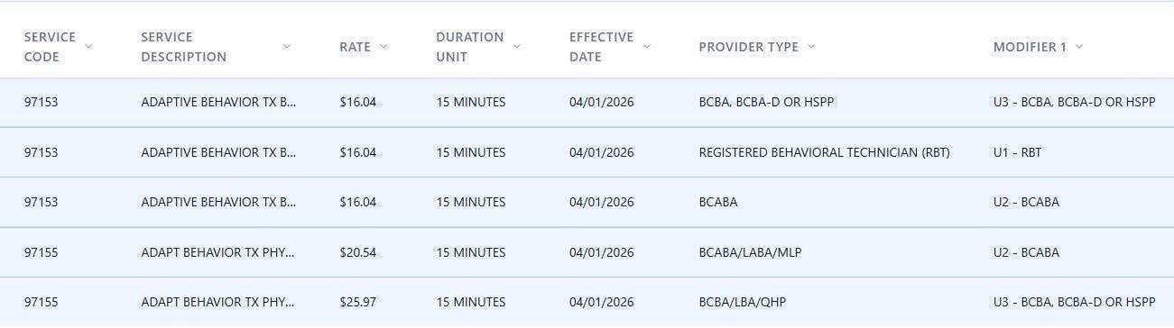 Indiana Medicaid ABA Rates by CPT Code: Current, April 2026, and April 2027